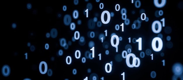 Binær kode bakgrunn med flytende tall i digitalt rom som representerer datateknologi og datavitenskap konsepter mørk bakgrunn med glødende sifre