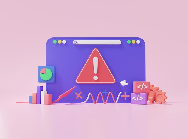 Minimal tegneserie nettleser 404 feilside ikke funnet Systemvedlikeholdsoppdateringer konsept gul trekant advarsel kode programvareutvikling banner nettsted 3d gjengivelse illustrasjon