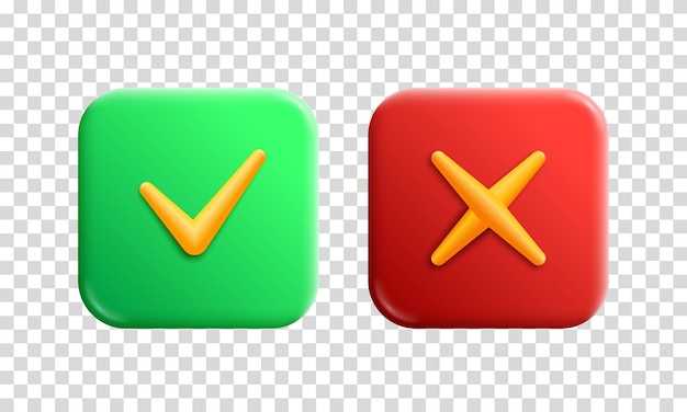 Godta og avvis vektor 3d render knapper Hake sjekk og kryss merker app ikoner med gjennomsiktig bakgrunn Avrundede rektangel former for web og mobil applikasjoner Ja og nei grafiske symbolerGodta og avvis vektor 3d render knapper Hake sjekk og kryss merker app ikoner med gjennomsiktig bakgrunn Avrundede rektangel former for web og mobil applikasjoner Ja og nei grafiske symboler