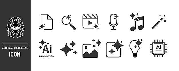 Generer video AI ikon Videokamera med generer symbol Opprette og redigere videoer med Maskinlæring Kunstig intelligens ikon element for app og web Vektor illustrasjon