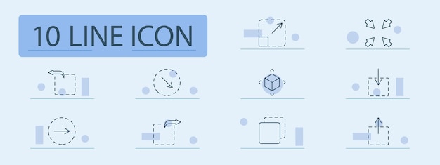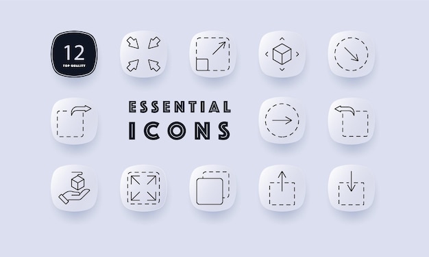 Endre størrelse settikon Utvid piler skaleringsboks 3D-kube fullskjerm minimer strekk piler endre størrelse retning flytt blokk juster kvadrat Nyttig for design layout og digitale grensesnitttemaer