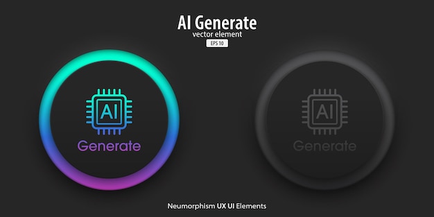 Sett med generative AI-knapper. Aktive og inaktive knapper med AI-brikkesettikon. Trykk på knappen for å skape ideer. Neumorfisme designstil for apper, nettsteder og grensesnitt. Vektorillustrasjon